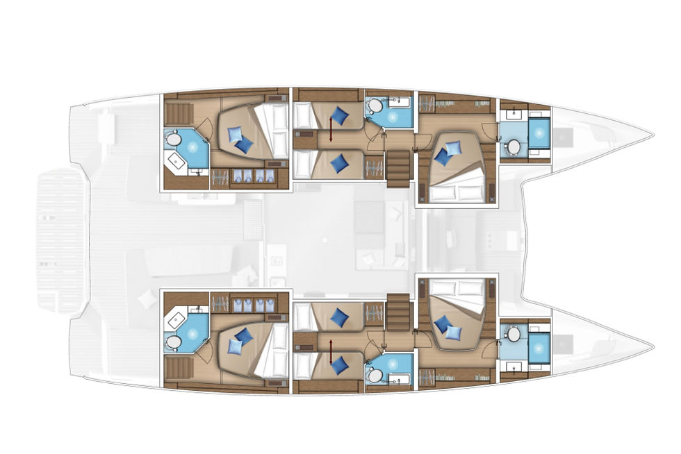 Built for efficiency and stability, the Lagoon 55 features a sleek, optimized hull design that enhances both speed and fuel efficiency. Her well-balanced sail plan, combined with an advanced rig setup and intuitive sail handling systems, ensures a smooth, responsive sailing experience even in changing conditions.